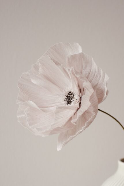 Als Strauß oder als einzelne Blume wunderschön, der Stil der Papierblume ist biegsam, so könnt ihr je nach Vasengröße oder Form die Blumen arrangieren.