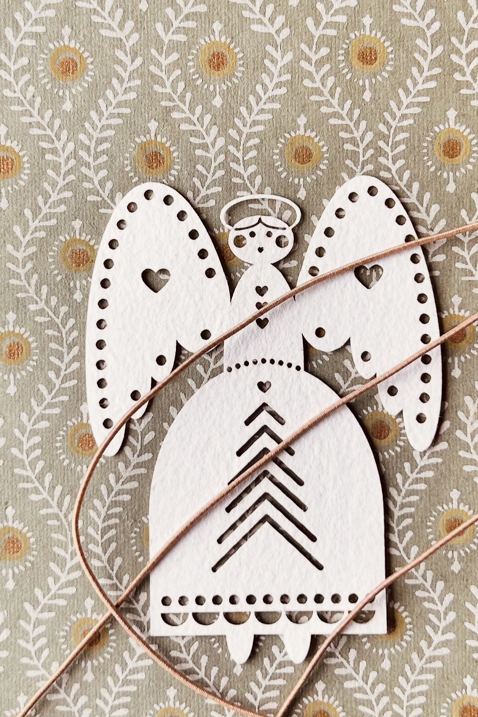 Einzigartiger Engel im skandinavischen Folkart Style, der traditionelle Muster und Formen der nordischen Kultur widerspiegelt.