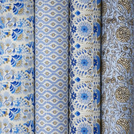 Meine eigentliche Leidenschaft sind die indischen Muster von Paisleys, Blumen, Bordüren und Wiederholungen von Motiven, und die Kunst des Blockdrucks war für mich eine Liebe auf den ersten Blick. Meine Kollektionen von Blockdruck-Heimtextilien sind von der besten Qualität, die heute in Indien erhältlich ist, und wurden in Zusammenarbeit mit den besten Handwerkern entworfen und hergestellt.