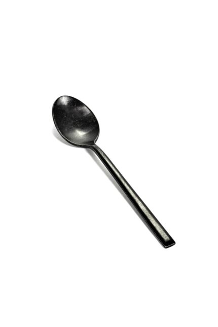 Mono hat Rückläufer über Jahre gesammelt und in Solingen „rommeln“ lassen. Tausende kleine Keramiksteinchen schleifen die Besteckteile in einer rotierenden Trommel und erzeugen das einzigartige Finish dieser auf 140 limitierte 5tlg. Bestecksets – ein Kleid für den zweiten Frühling